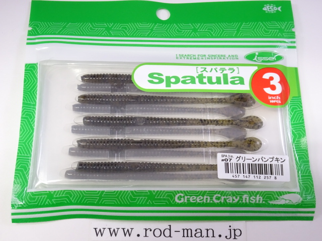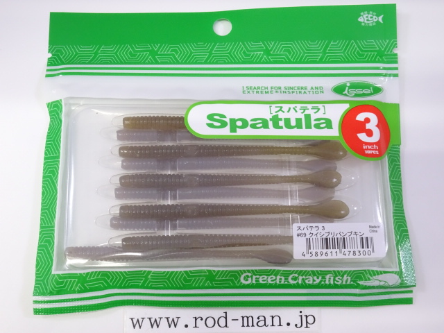 ライトウエイトのジグヘッド用に設計されたストレートワーム・スパテラ。テールに小さなパドルテールがデザインされており、これが水流やロッドアクションを受けて微振動を発生。バスにナチュラルに、でもしっかりとアピールします。