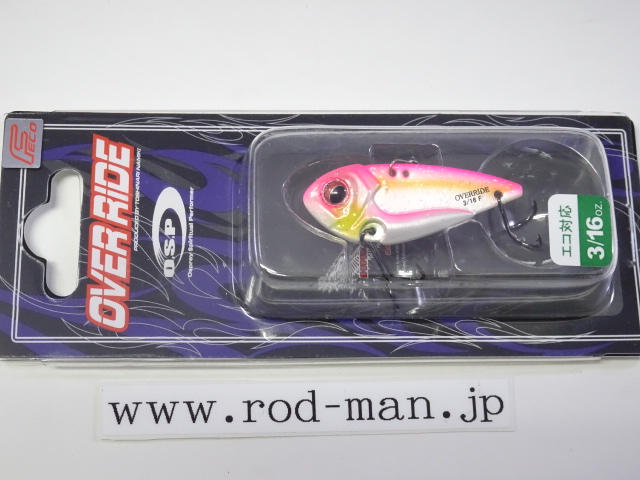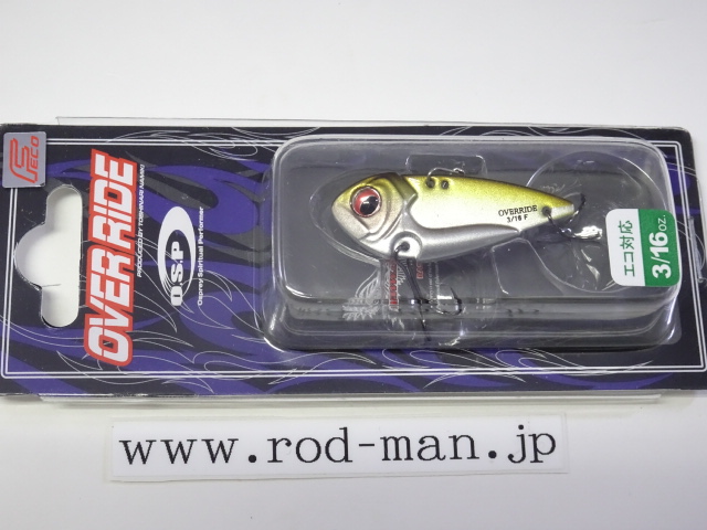 リアクションの釣りの代名詞であるメタルバイブ「オーバーライド」に新サイズ3/16oz.が登場、このサイズはオカッパリで使いやすく、ボートからでも水深2mから10m付近までのメタルバイブとしては比較的浅いレンジを得意とする。