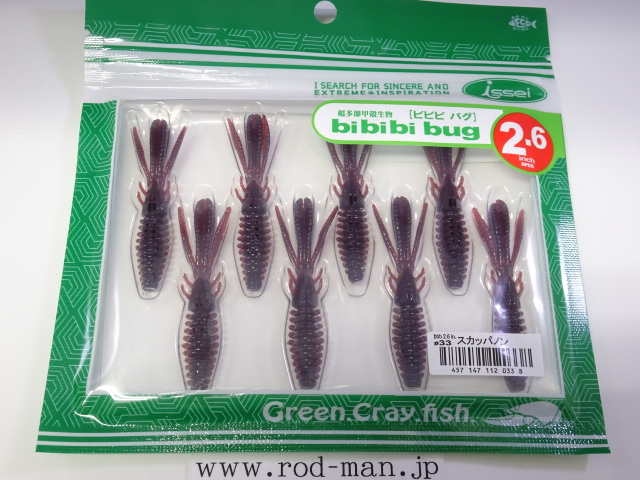 リグやシチュエーションを選ばないジャストベイトサイズ。ボリュームの異なる触角に、凹凸のある複雑なボディ表面が、アクション時に微振動を生みます。頭部についた4本の脚は、フォール時に水を噛みながら極小バイブレーションを発生し、糸鳴りを嫌うシチュエーションでも、ノーアクションで確実に魚に口を使わせます。ジグヘッドやオフセットフックをセットしやすいようスリットを配置しました。