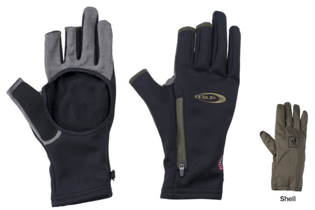 手のひらはロッドの操作性や感度を損なわないようパームレス仕様。また手のひら部には薄手で丈夫かつグリップ性も良いアマーラ生地を採用しています。本体生地には伸縮性のあるスリーレイヤーソフトシェル素材を使用。中間層にはフィルムが入っており、防風性、防水性に優れています。また肌面は起毛生地で保温性も〇。手首部は長めにとり、すき間からの風の侵入を防止。キャストやラインワークなどの操作がしやすい3フィンガー仕様。付属のアウターシェルグローブは、移動時など冷たい風をブロックしアウターとして着用いただけます。手の甲部分のポケットには、アウターシェルの収納が可能。また真冬の釣行時に使い捨てカイロを入れれば抜群の保温力を発揮します。