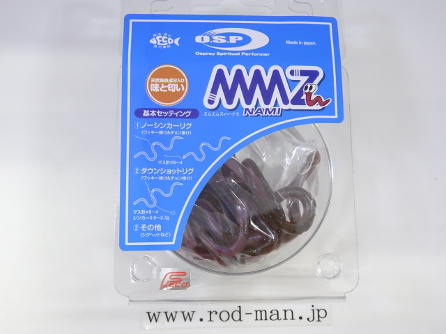 多種多様なサイトフィッシング(以下サイト)テクニックが入り乱れる昨今、エキスパートロコたちにこぞって研究されているのがライトタックルを用いたノーシンカーでのミミズ系ワームのサイト。通常であれば見切られてしまうような、ラインの存在すら察知して嫌がる極めてクレバーなバスに口を使わせるため、サイズ・形状・硬さや柔らかさといった要素を徹底追及。喰わせを最重要課題に設定し、サイトを得意とするO.S.Pプロスタッフ達とテストを繰り返し煮詰めながら辿り着いたのがMMZ。真っ直ぐなワーム=疑似餌と認識する天才バスの思考を惑わすため、不規則な曲がりを伴い、実釣で求められる耐久性を確保しながらのナチュラルな柔らかさ、そしてサイトで欠かせない飛距離性能と沈下速度のベストバランスを追い求めた塩量で配合。全てに意味をもたせデザインされたMMZは、ノーアクションだからこそバスの本能に訴える食性バイトを誘発させる。アングラー自身がバスに気づかれていながらも口を使わせてしまうMMZがサイトに新たな旋風を巻き起こす。