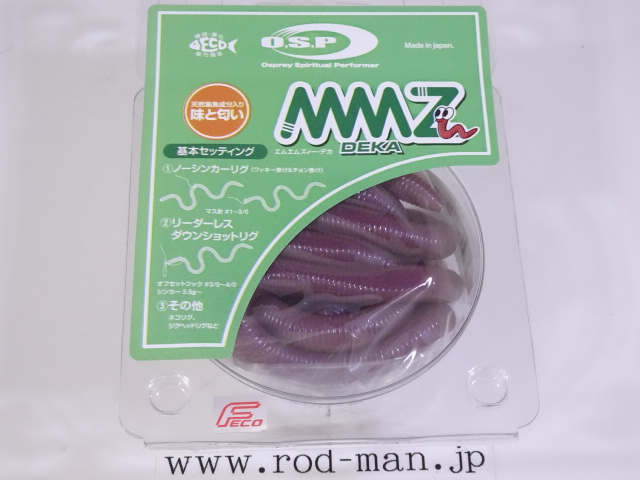 発売後直後から各フィールドで驚異的な釣果が報告されたMMZシリーズに、全長13インチクラスとなるデカが新たにラインナップ。近年、トーナメントでキッカー攻略に欠かせないのがマグナムサイズのロングワーム。数々のマグナムサイズのロングワームが釣果をもたらしてきたが使用率増加やアプローチ方法の周知により、ことハイプレッシャーフィールドにおいてはアドバンテージになりづらくなっている。そんな最中、新たな一手としてMMZのマグナムサイズの開発がスタートした。MMZの初期テスト段階からサイトフィッシングに効果的なサイズ感を徹底検証し、フィネスサイズかマグナムサイズかの両極端なサイズ感こそが、サイトフィッシングにおけるバス攻略のキーと確信。ルアーに怯えるほどの高プレッシャーでシビアな状況であればチビ、飛距離と使い易さといった総合力を求めるならばナミ、ボリューミーだからこそ反応させ喰わせることが可能なデカ、という結論である。デカは単純にサイズを大きくしたわけではなく極力トラブルレスなサイズ感と、耐久性も見据えたマテリアル選定を行いないデザイン。13インチクラスなのに長さを感じさせないMMZデカは、未知の可能性を拡大する。