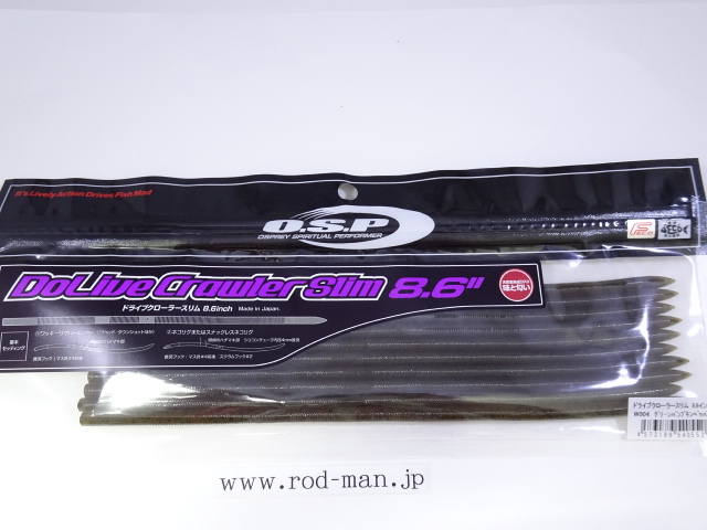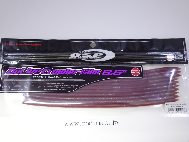 ドライブクローラースリム8.6”はノーシンカーワッキーによるフィネスなアプローチから、2.6g程度のネイルシンカーを使用したカバーネコリグでもストレス無く扱える様に、喰わせ能力を損なわずギリギリまでスリムにしたボディと長さ、それにベストマッチなマテリアル選定で設計。ストレートワームの新戦略としてバスのバイトを誘う。