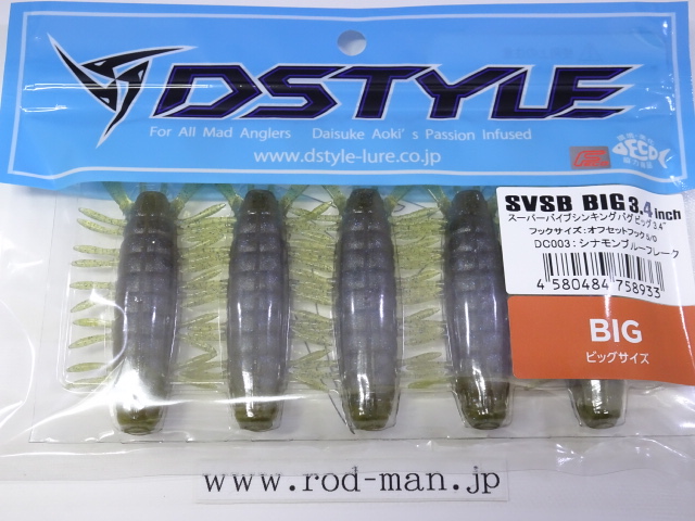 脚はラバーではなくSVSB同様にボディと一体成型する事により、脚の微振動が実現。ボディの比重と相まって脚の動きはより艶めかしく動きます。BIGで追加になったダブルテールはバタバタ水を噛みアクションする事で食わせのスイッチとなります。