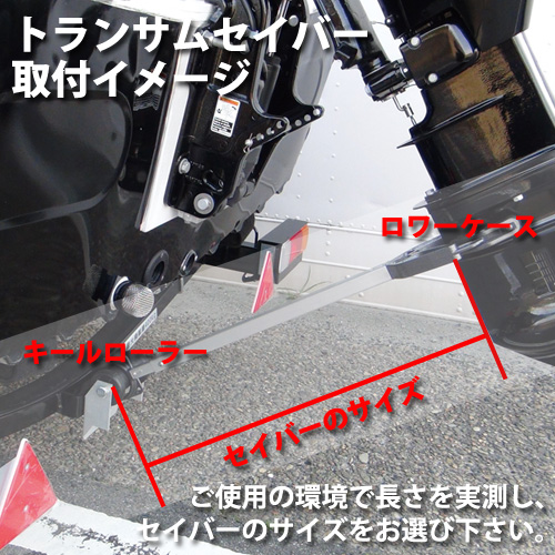 ※トランサムセイバーはトレーラーでのボート輸送時に船外機の揺れを抑え、重量をトレーラー側に分散しボートトランサム部分を保護するアイテムです。