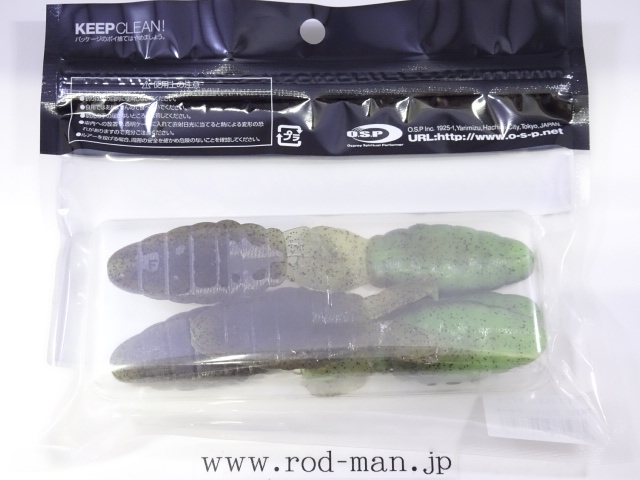 ドライブSSギルはベイトとなるエビ系や小魚系がいる中、ギルイーターと言われる特にブルーギルを偏食するバスに対し、効率的かつ圧倒的な釣果を得るためにサーチ&喰わせ性能を最大限に引き出したブルーギル系ワームである。幾つものブルーギル系ワームが各社からリリースされコンセプトは十人十色であるが、釣れる要素は何なのかを研究し辿りついた答えが、スライド性能がもたらすフォール時の適度にゆっくりと水を押しながらの大きなスパイラルフォールと、フォールやボトムでのシャクリによる予測不能なトリッキーアクションである。そのスパイラルフォールはブルーギル本来の無警戒な遊泳を演出しながらも、大きくスパイラルすることで1キャストで広範囲にアピールしバスを引き寄せ、本物に似た水を押し感と尾びれを思わせるテールのハイピッチアクションが相まって本気バイトを誘発。使いやすさやフッキング性能を追求しながらも、フォール時の圧倒的なスライド幅を稼ぐための形状とマテリアルでデザインし実釣性能を凝縮。フィールドで実証済みの数多くのバイト、そしてガツッガツッガツッと咥えたルアーを飲み込もうとするような本気バイトの別世界は、新たな持ち駒とせずにはいられない。