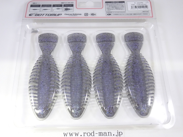 スリットで水を受けバイブレーションするオリジナルテール。尾びれの動きをイミテートしつつ水中に波動を発し、バスからの発見率を高めます。 そしてロッドワークではしなやかに上下動。厚みのあるウチワ状の面が水やボトムを叩き、強い水押しでのアピールも可能にします。