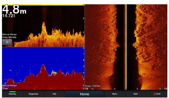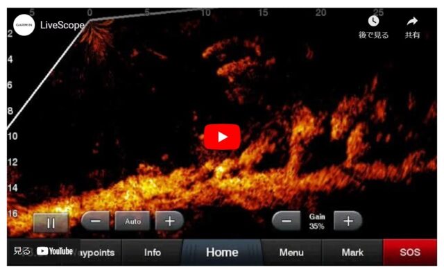 更に高性能を求める場合は、別売りGLS10+LVS32を購入すると 水中前方下方連続135°を動画で捉えてまるで映像のようにに水中を視覚化します。下記は別売りGLS10+LVS32を使用した映像です