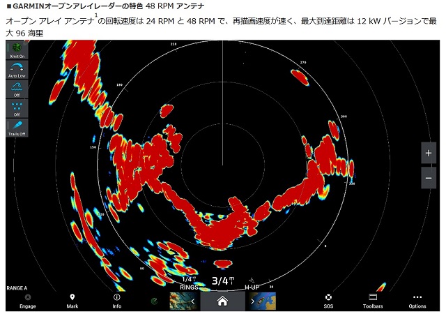 ■GARMINレーダーの特色 レーダー映像が自船ヘディングに追従するトルービュー表示※
