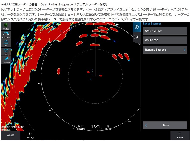 ■GARMINレーダーの特色 最小探査距離20mの近距離探知性能