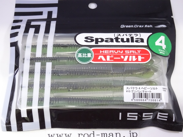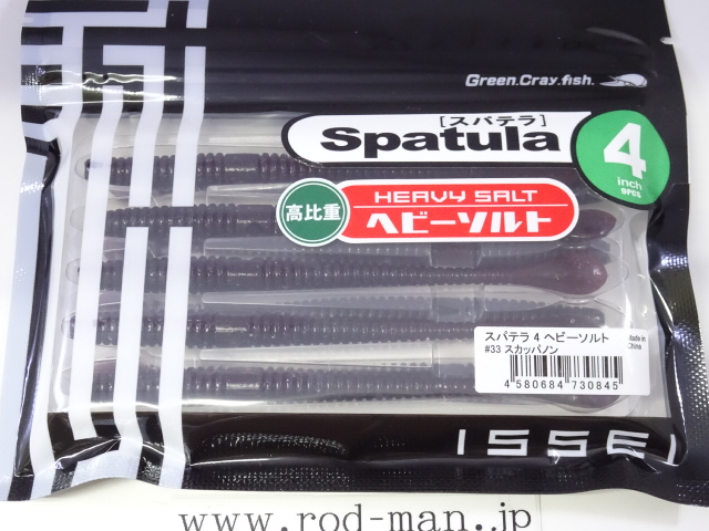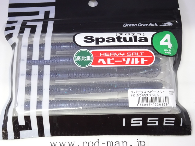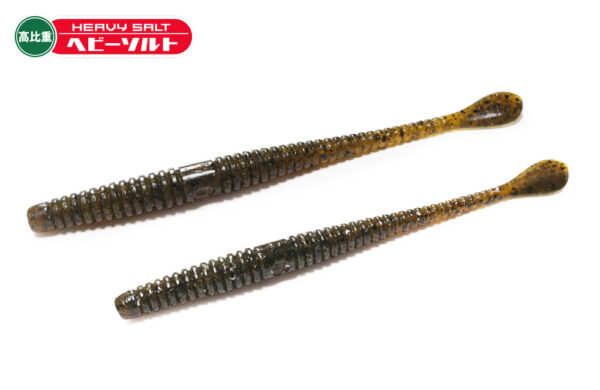 圧倒的釣果を叩き出してきたスパテラシリーズ。そのスパテラに高比重素材を採用し、ノーシンカーやライトスプリット等、軽量リグでの飛距離、素早いフォール、塩のバイト誘発力を手に入れました。 フリーフォールでの喰わせが有効なのはもちろん、 トゥイッチやショートジャークで、上下(左右)非対称のスパテラテールが、シルエット以上に水を掴み、プロップアクションでバスにアピールします。