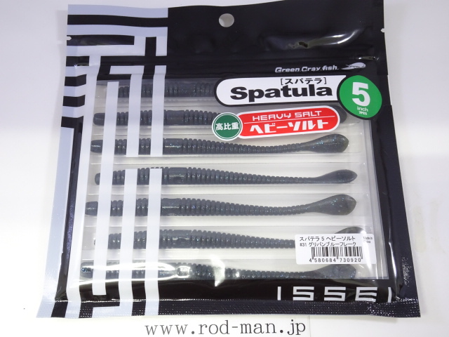 圧倒的釣果を叩き出してきたスパテラシリーズ。そのスパテラに高比重素材を採用し、ノーシンカーやライトスプリット等、軽量リグでの飛距離、素早いフォール、塩のバイト誘発力を手に入れました。 フリーフォールでの喰わせが有効なのはもちろん、 トゥイッチやショートジャークで、上下(左右)非対称のスパテラテールが、シルエット以上に水を掴み、プロップアクションでバスにアピールします。