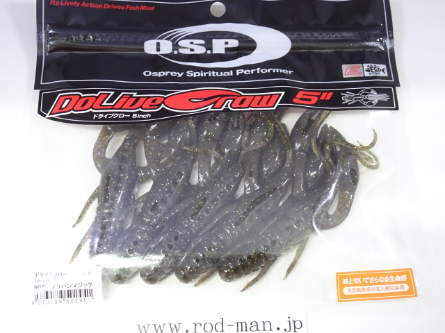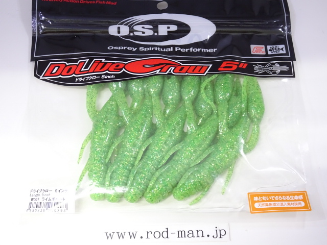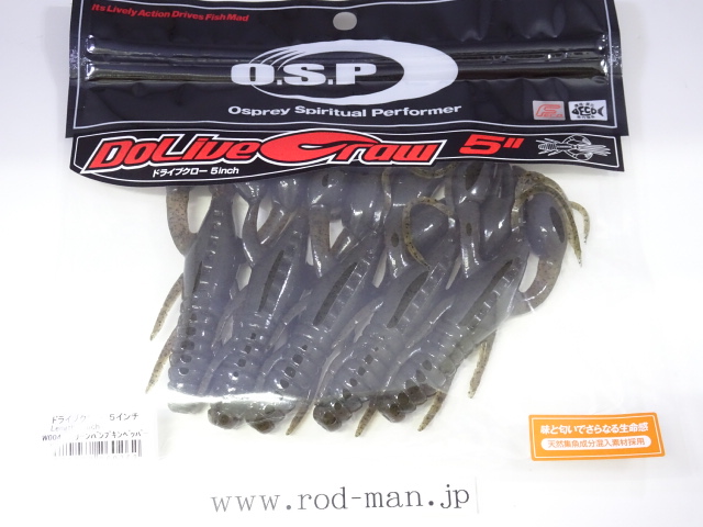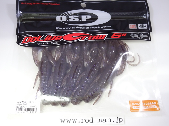 究極のクローベイトを創るための開発は、これまでのクロー系、ホッグ系ワームのアクションを徹底検証するところからスタートした。スーパークリアなプールでのアクションテストと実釣を繰り返した結果、バイトはそのワームが「生命感ある動きを見せた」ときに集中。フォールで艶かしく動くものはフォール中に、その後の誘いで本領を発揮するものはその誘い中に、といった具合に・・・。逆にいえば、着水からピックアップまでの一連の動作の中でワームが魅力を失う隙が生じてしまえば、そこでバイトチャンスをロスすることを意味する。O.S.P初のワーム、『ドライブクロー』は、゛全てのパーツが無駄なく機能し、何時如何なる時でもバスを誘い続ける゛各パーツのそれぞれ異なった動きがMIXすることで生まれる別格の艶かしさはフォール中のバイトを激増させる。着底直後にはボディーに対してハサミとヒゲが遅れてスローに倒れ込む時間差アクションが発生してバスを魅了し、その後の様々なパターンの誘いでもパーツのどこかが常にバスを誘い生命感を失うことはない。まるで生きているかのような蠢き(うごめき)と疑いなき強烈なバイトを体感してほしい。