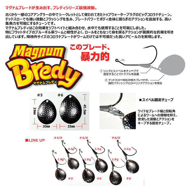 マグナムブレディはこの効果をソフトベイトと組み合わせ、水中でも使用することを可能にしました。