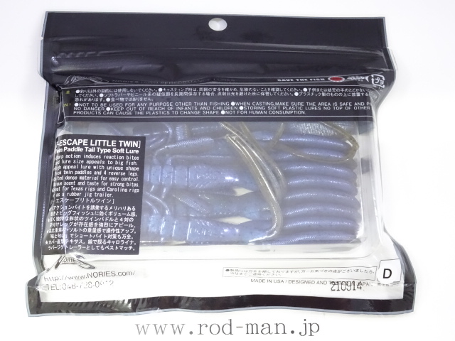 数々の実績を誇る「エスケープ ツイン」をワンサイズダウンしたのが「エスケープ リトルツイン」。リアクションバイトを誘発するメリハリの効いた動きと、ビッグフィッシュに効くボリューム感はオリジナルから継承しています。ダウンサイジングといえども、厚さをもたせた独特な形状のツインパドルと2対の逆付けレッグが大きく水を動かし、存在感を強烈にアピールします。シルエットは小さめのザリガニにあわせた食わせサイズながら、アピール不足を感じさせないボリューム感に仕上げています。アクション時にはツインパドルを上下に振り、逆付けレッグがわずかな水流にも反応してパドル側へなびきます。そしてステイさせた瞬間、パドルがつんのめるように振動し、レッグがモゾモゾと元に戻るようにアクションします。見ていただけのバスも思わずバイトしてしまう動きで誘います。高比重素材+塩の重量感で、ピッチングやフリッピングにおける操作性も抜群な上に”味と匂い”の粒子でショートバイト対策も万全です。使い方は杭やブッシュなどのカバーへの直撃テキサスリグ。ブレイクやハンプ狙いのキャロライナ。ビッグフィッシュ狙いのラバージグトレーラーとしてもベストマッチ。状況に応じたオリジナルサイズとの使い分けで、勝負の早い”強い”ソフトベイトの釣りがさらに完成に近づきます。