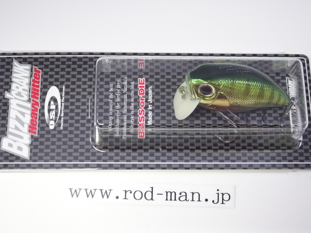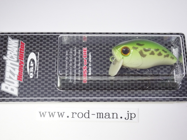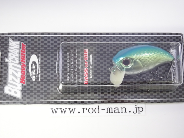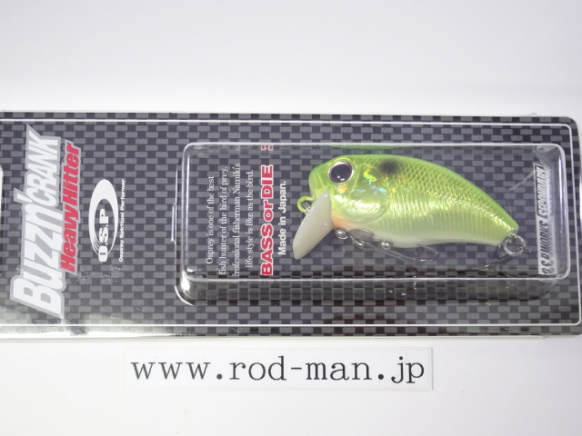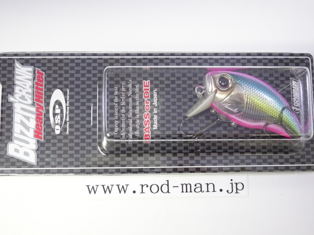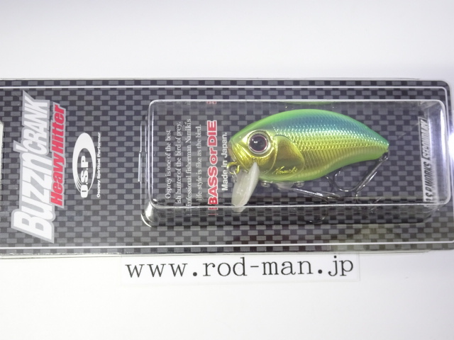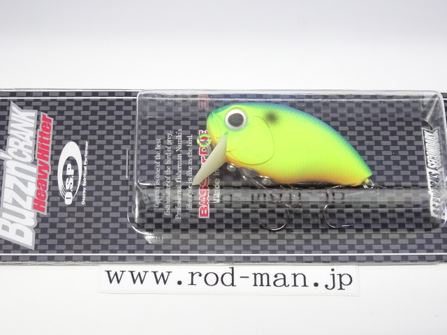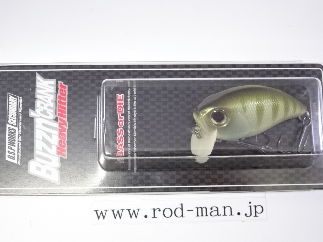 ヘビーヒッターは、オリジナルバジンクランクのラトル音を大きく上回るハイアピールバージョンに位置づけられる。ラトル音はABS樹脂の種類によって変わってくることから、開発当時はあらゆる素材でテスト成型した。しかし納得できる音には至らず、複数の樹脂を独自に調合することによってようやく理想の音に行き着いた。樹脂の色はボーンカラーになったものの、泳ぎは向上しトップウォーターでの使用であれば、そのリップの色によって釣果が落ちる心配はない。また、これまであそびの少なかったタングステンメインウエイトを、左右の壁に激しくHitするよう内部の金型を改造。そして新たな内部構造に対応した、ベストなアクションを生み出せるウエイトパターンを再構築した。5%軽量化されたボディ重量がアクションをワイドにさせ、メインウエイトが激しく暴れることによってアピール度を最大限に引き上げた。その段違いのゴトゴト音は強い波動となって広く、ディープにまでアピールする。この音はバスの側線にベイトのサイズが大きいと判断させ、大きいからこそバイトしてくるビックバスを強烈に刺激する。さらに、ハイアピールを武器に、広範囲からスピーディにチェックするサーチベイトとしての能力が高い。マズメ時などのローライトコンディションや濁りによって視界が悪い時、雨で水面がザワついている時や、高活性時などにも良い。つまりHeavyHitterは音を武器に常にビックバスに効果的な上に、フィールドコンディションに合わせた使い分けによって圧倒的釣果をもたらす、まさに強打を放つ代打の切り札である。