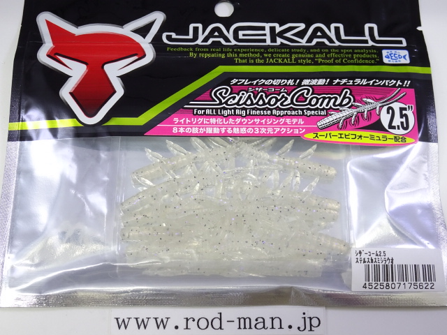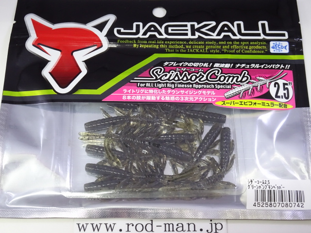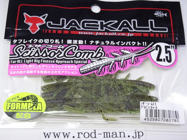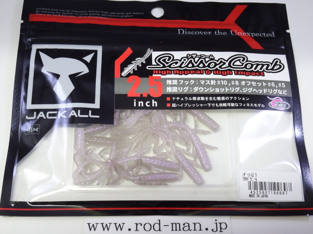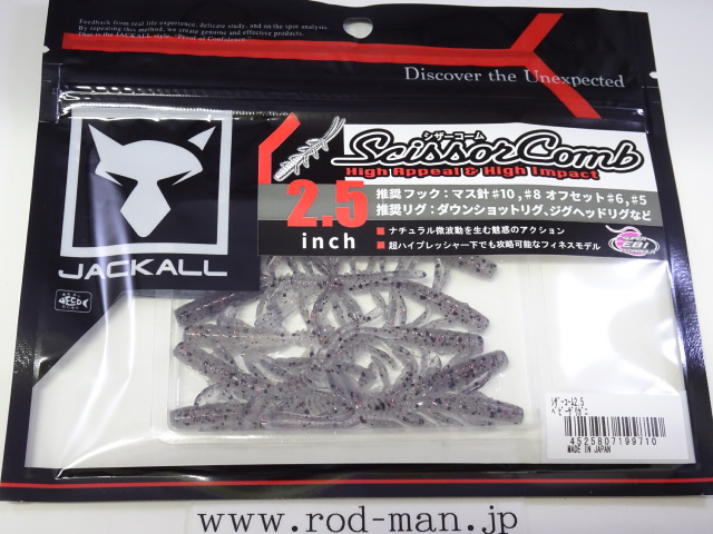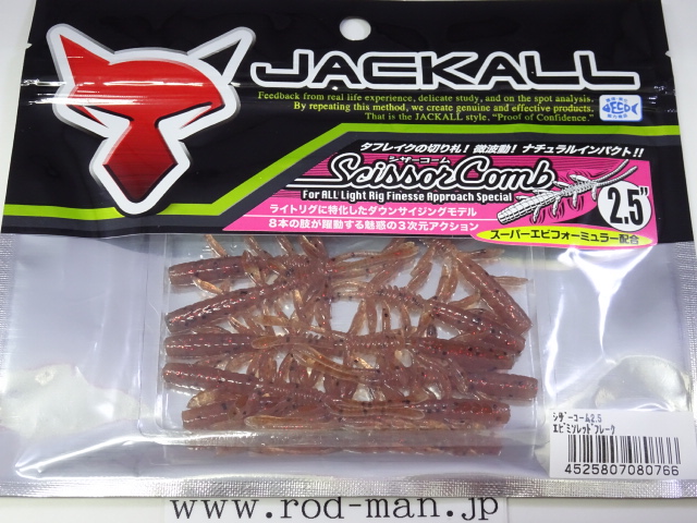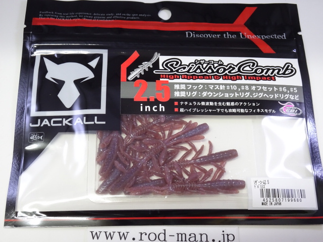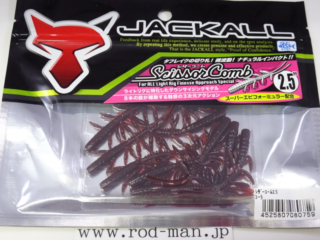 千葉県・亀山ダムのスーパーロコ川島勉氏が、人がさんざん撃った後でもバスを獲るために作った異形(いぎょう)のワーム。最大の特徴は逆に取り付けられた4対のアーム。このアームが水を受けてバイブレーション、それもややロールをともなう複合アクションを起こします。ボディはカバーにスルリと滑り込むコンパクト設計ですが、バスを寄せる力は強烈!より軽いシンカーでカバーの奥の奥まで入れて、アピール力の強い細かなバイブレーションでプレッシャーの高いフィールドでも釣果をもたらすことができます。シザーコームの特徴的なアクションはフォール、シェイク、ズル引き、バンピング、また弱い水流でも動くため、ステイ(放置)でも発生。さまざまなアクション、シチュエーションで使用可能なオールマイティワームです。