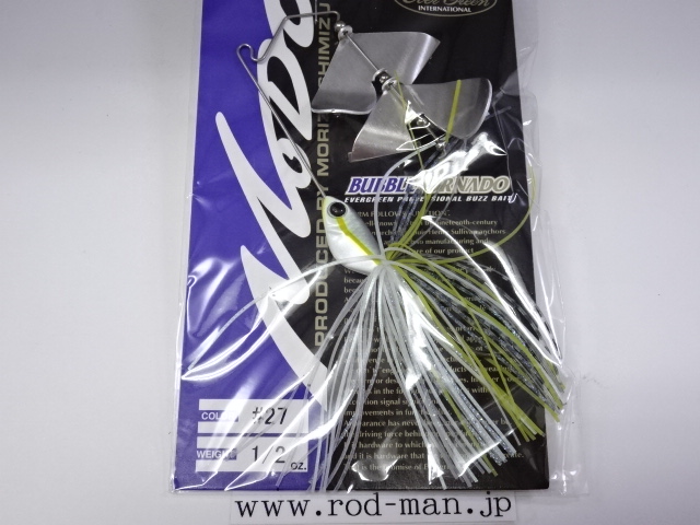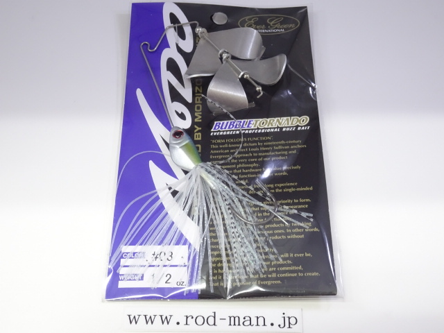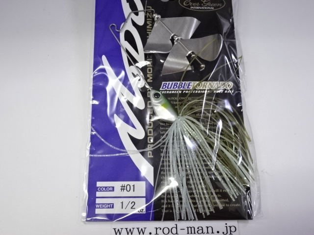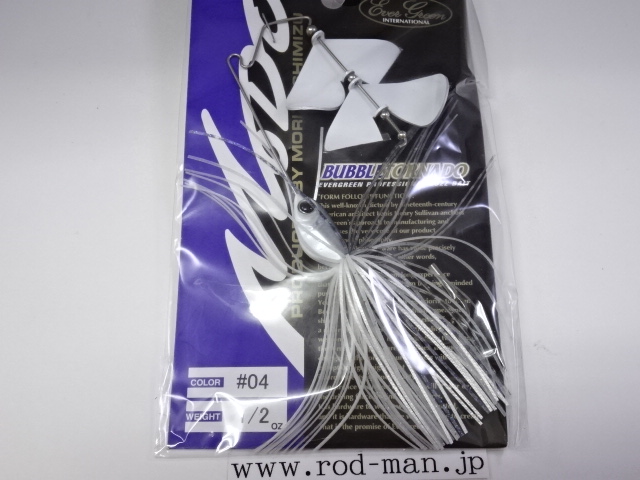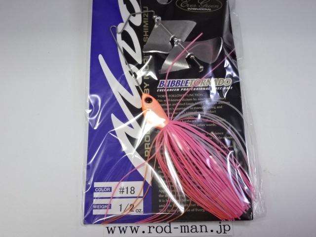 通常2人が同じボートに乗る本場アメリカのトーナメントスタイルで盛三は「釣り負けることの恐さ」そして「釣り勝てるルアーの威力」を身を持って知った。アメリカンツアーでの彼の経験と自信、そして限りなき実戦テストがバブルトルネードを生み出す原動力となった。釣り勝てるバズベイト、清水盛三の自信“バブルトルネード”。