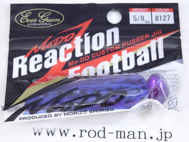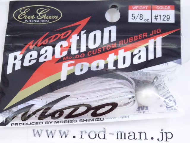 デカバスを確実に掛けてバラさないロングシャンクフックは、盛三自らが線材を曲げてデザイン。またトレーラーを確実にホールドし、ズレにくいキーパー形状には彼のこだわりが込められている。独自のヘッド形状、フック形状、ガードの位置と堅さの調節。盛三いわく、「普通に根掛かりしにくくて、効率良く、デカイのをディープで獲れるジグだ。」と。ただし、彼の言う、「普通」というレベルが常人とは全く異なる高いレベルだということは、Dゾーン、ワイルドハンチetc…Mo-DOの他のルアーを見れば判るだろう。アメリカでは試合中にロクマルを仕留め、帰国後の冬のリザーバーでのDVDロケでも入れ食いを演じた、Mo-DOリアクションフットボール。普通のレベルが違うラバージグだ。