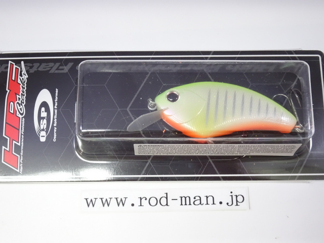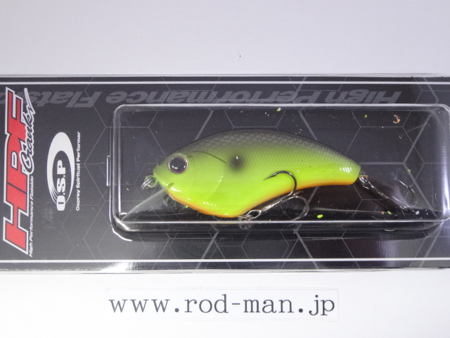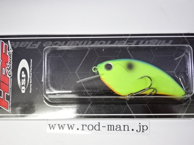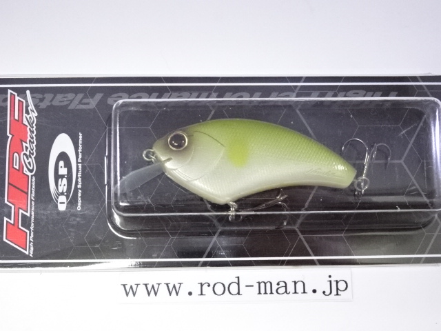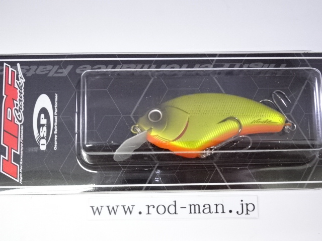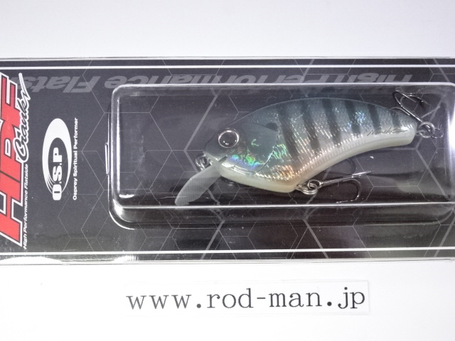 ウッド製の最大の弱点といえるキャスタビリティの悪さを大型タングステンによる重心移動システムで解消。さらに、U字型の固定ウエイトに移動ウエイトボールがすっぽり収まるホールインワンシステム(PAT.)によって重心移動式でありながらウッド同様の一点集中重心の泳ぎを手に入れた。また、リップの角度とウエイトの位置、フックの取り付け位置を考慮し前傾姿勢を強めることによって、レベルを超えたスナッグレス性能を実現。さらに、ABS樹脂の強度を保ちつつ40%の肉薄化に成功したハニカムスーパーHPボディ(PAT.)によって、ウッド製フラットサイドのアベレージを完全に上回る浮きスピードをマークした。また、軽量極薄HPスラッシュビルとの相乗効果でウッド製を上回る超ハイピッチなレスポンスをムラなく実現した結果、実釣においてもこれまでに経験したことのない「寄せる力」を見せ付ける。例えばテトラの際などを平行に通しただけで、通常のラウンドクランクでは出て来ない、中にひそむバスが猛然とバイトしてくることも珍しくない。さらに、多少コースがずれてもかまわずバイトしてくるほどだ。
