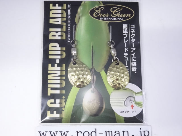 E.G.チューンナップブレードは、高性能ボールベアリングスイベルに強化スプリットリングをセットしたフロッグ用チューニングパーツです。 お手持ちのエバーグリーンフロッグ(キッカーフロッグ、ダーターフロッグ、ポッパーフロッグ、スカーテッドフロッグ)に標準装備の「コネクターアイ」に装着するだけで、簡単にブレードチューニングが楽しめます。