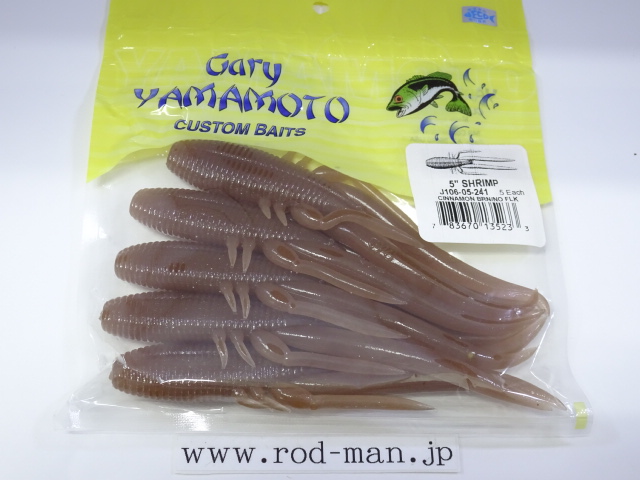 ゲーリーヤマモト 5インチシュリンプ お勧め商品 商品番号:2000000885 ゲーリーヤマモト 5インチシュリンプ #240 ナチュラルプローブルー ¥1,050 ¥1,050(税別) ( 税込¥1,155 ) 数量点 #241 シナモン ¥1,050 ¥1,050(税別) ( 税込¥1,155 ) 数量点 ◆カラーチャート #240 ナチュラルプロブルー #241 シナモン ◆スペック テナガエビをイミテートしたような長いひげが特徴的なクローワーム。活発に動くようなパーツはありませんが、細く伸びた各部パーツが微振動によってバスに静かに、でも確かなアピールを施します。遠賀川でもよく釣れる、定番クローワームの一つです。 シュリンプサイズ比較 左から 2” 3″ 4″ 5″