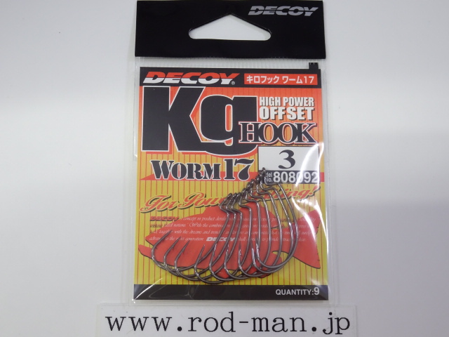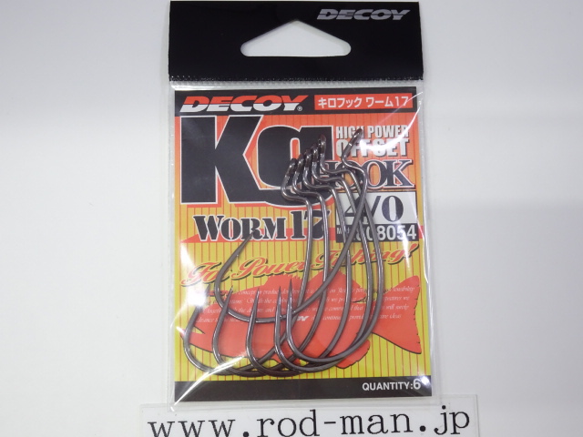 クローワームでもストレートワームにでもオールマイティに対応するオフセットフック”キロフック・ワーム17” ワイドゲイブも広めに設定されているためバルキーなワームにセットしてもばっちりフッキング。またストロングワイヤーを採用しているため、とても複雑なカバーからのフッキングやランディング、ビッグバスハンティングにも対応しています。ベイトフィネス用のフックもラインナップに追加されさらに充実した内容となっています。