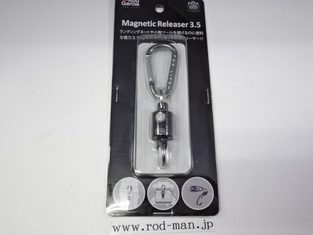 ランディングネットや小物ツールを提げるのに便利な強力3.5kg 磁石のワンタッチ脱着リリーサー!!
