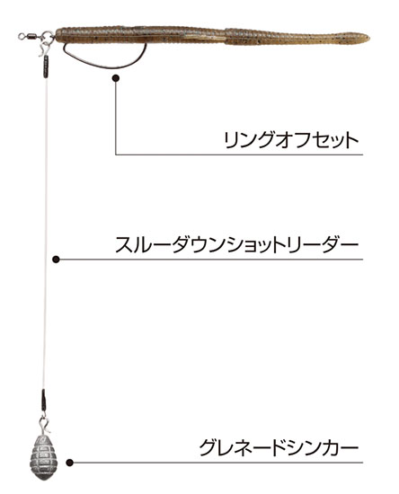 リングオフセットにワンタッチ装着できる専用リーダー。ヘビーダウンショットの弱点であった糸ヨレが徹底解消されることで、スムーズにスポットへ攻略可能。太目のリーダーを採用することにより、リーダーが障害物の隙間に入りにくく根掛かりが激減。これまでの常識では考えられない、スルーリグ感覚でダウンショットをカバーに打ち込める驚愕の新メソッドです。スルダン(スルーダウンショット)にもおすすめのリーダーです。