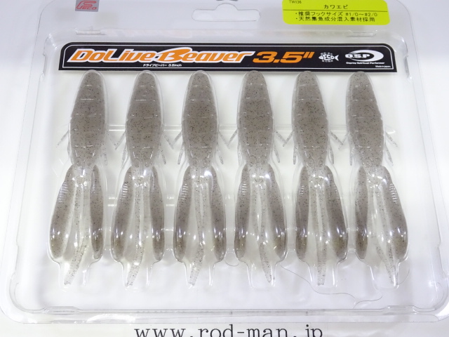 ホグ系の新たなワームとして誕生したドライブビーバー。特徴はカバー際でのすり抜けやすさや誘い、フッキング、キャストのしやすさといったトータル性能の高さ。そしてDoLiveシリーズの名を継承した自発的でありながらもトルクフルなバサロアクションである。カバー攻略を意識すればするほど、すり抜け性に影響を与えるパーツが削がれたシンプルなデザインになり、誘いも単調になりがち。だが、すり抜けやすいシンプルなボディー形状ながらも緻密にデザインされたバサロパドルはボディーを大きく揺らしながら腹側背側(上下)に大きく振れ、相反する条件を高次元にクリア。14g以上の重いシンカーはもちろん、2g程度の軽めのシンカーでもフォール時にこれまでに全くなかった自発的バサロアクションを発生させ、スローな食わせからスピーディーなリアクションまで幅広く対応。スイミングではボディーをくねらせながらバサロパドルを上下に、スイミングスピードを速めれば上下左右ランダムにバタバタとバタつかせ、まるで逃げるザリガニのごとく躍動的な生命感溢れるアクションでバスの捕食本能を覚醒させる。カバーのバスでさえルアーを選ぶほどハイプレッシャー化し攻略法が多様化しつつある昨今、ドライブビーバーがホグ系ワームの新たなスタンダードとなる。