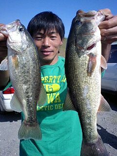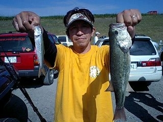 優勝 チームホワイトベルトの鈴木さんと秋場健三 5本 4200g