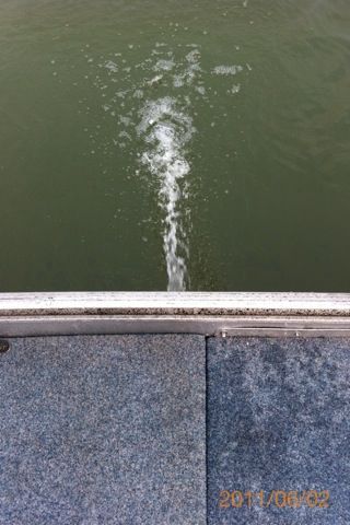 実際に遠賀川に浮かべて、動作確認と水漏れチェックです。