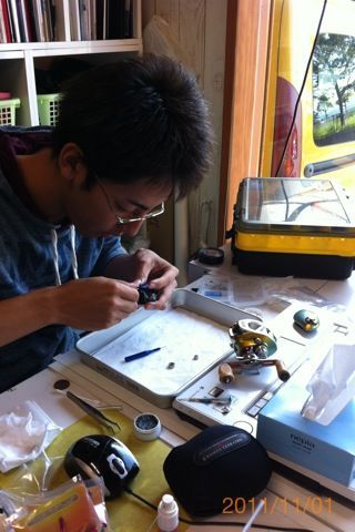 店に帰ってくるとトモティがベアリング交換してました。