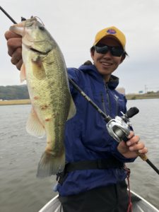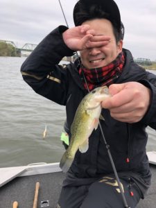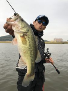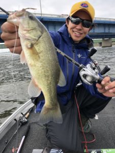 サイズはまぁまぁですがエサを食べに来てたナイスコンディションのバスをゲット❗️